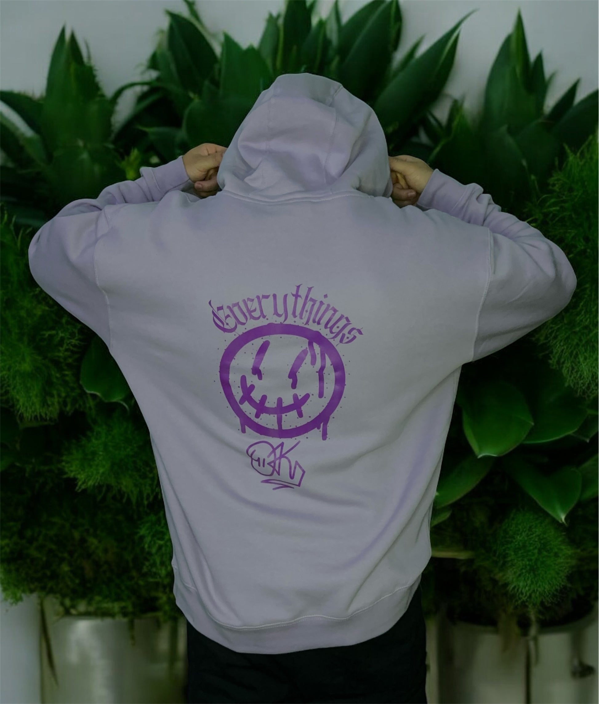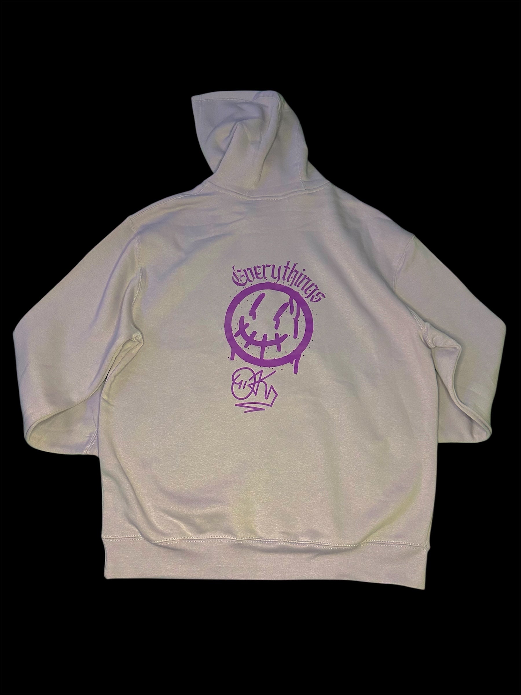 Graffiti Style Splatter, Violet with dark purple fonts.